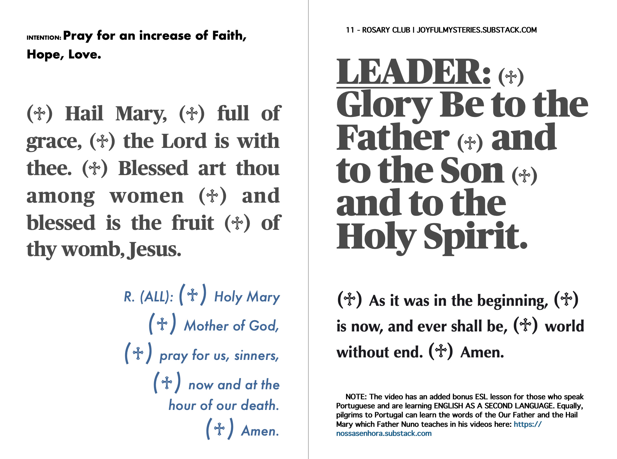Pilgrims can learn to pray the Rosary in Portugal using the video. Also, ESL learners can study the prayers of the Our Father and the Hail Mary with the video subtitles.